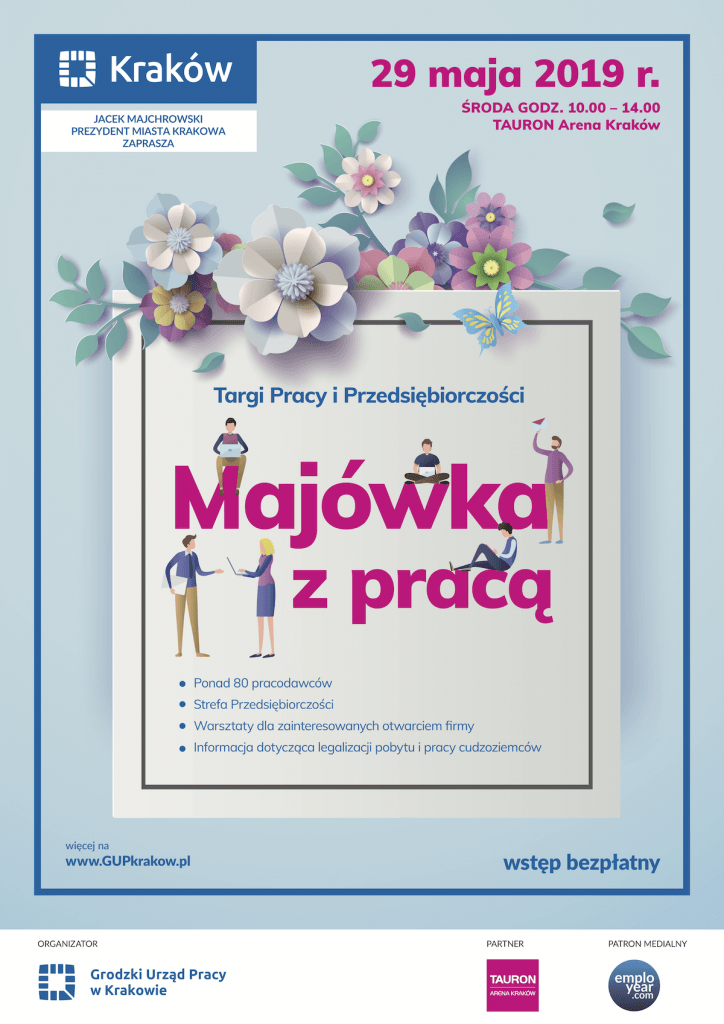 Organizatorzy serdecznie zapraszają wszystkich mieszkańców Krakowa i okolic na Targi Pracy i Przedsiębiorczości „Majówka z pracą”. Uczestnictwo w wydarzeniu to okazja dla osób poszukujących zatrudnienia do bezpośredniego spotkania z potencjalnymi pracodawcami, zapoznania się aktualną sytuacją panującą na lokalnym rynku pracy oraz szeroką bazą ofert pracy oferowanych przez wystawców.